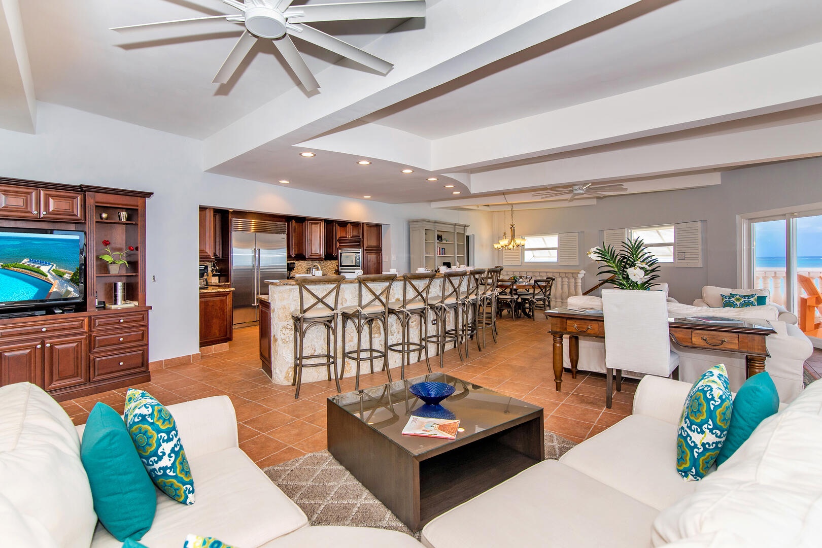 Two private pools, multi-tiered ocean terraces, a panoramic veranda balcony, and a well-shaded pool deck provide guests plenty of room to spread out and enjoy island living. The views are breathtaking.