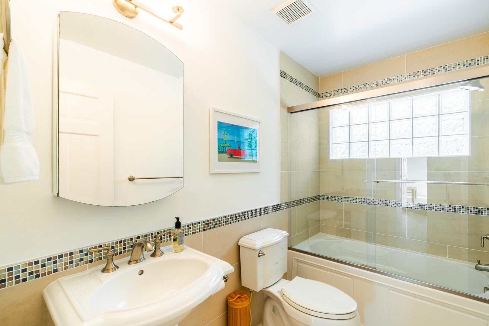 Contemporary and modern, the home is also wired with fiber-optic internet, perfect for remote working professionals.