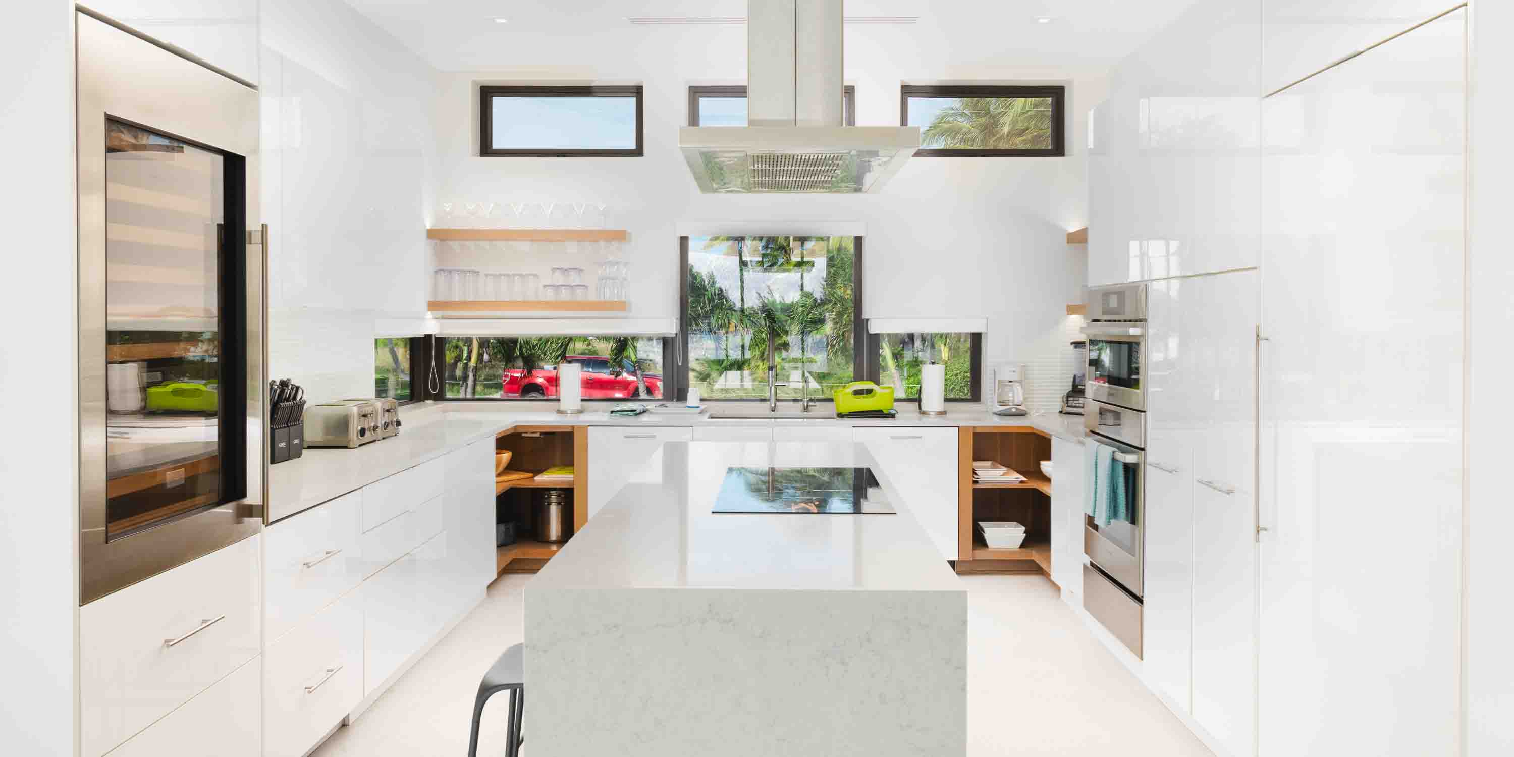 - Gourmet kitchen with induction cooktop, Sub-Zero wine fridge, two dishwashers, additional Sub-Zero refrigerated drawers, and freezer drawer with ice machine.