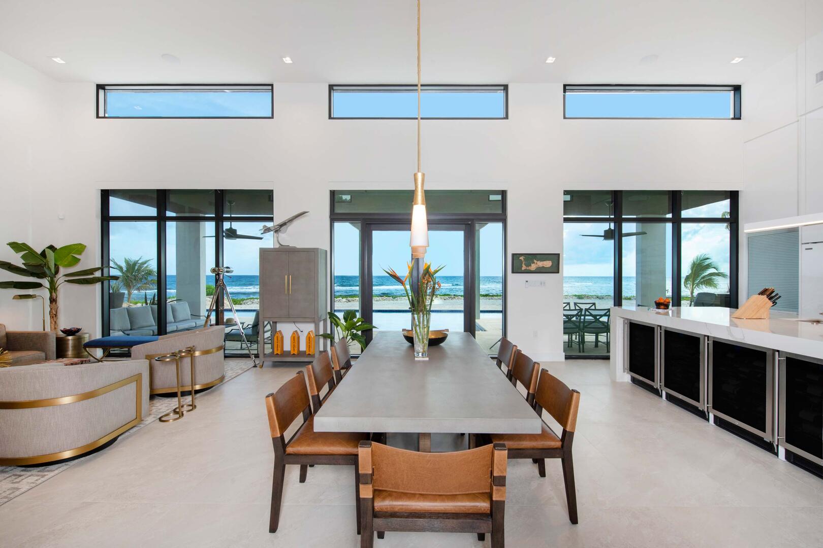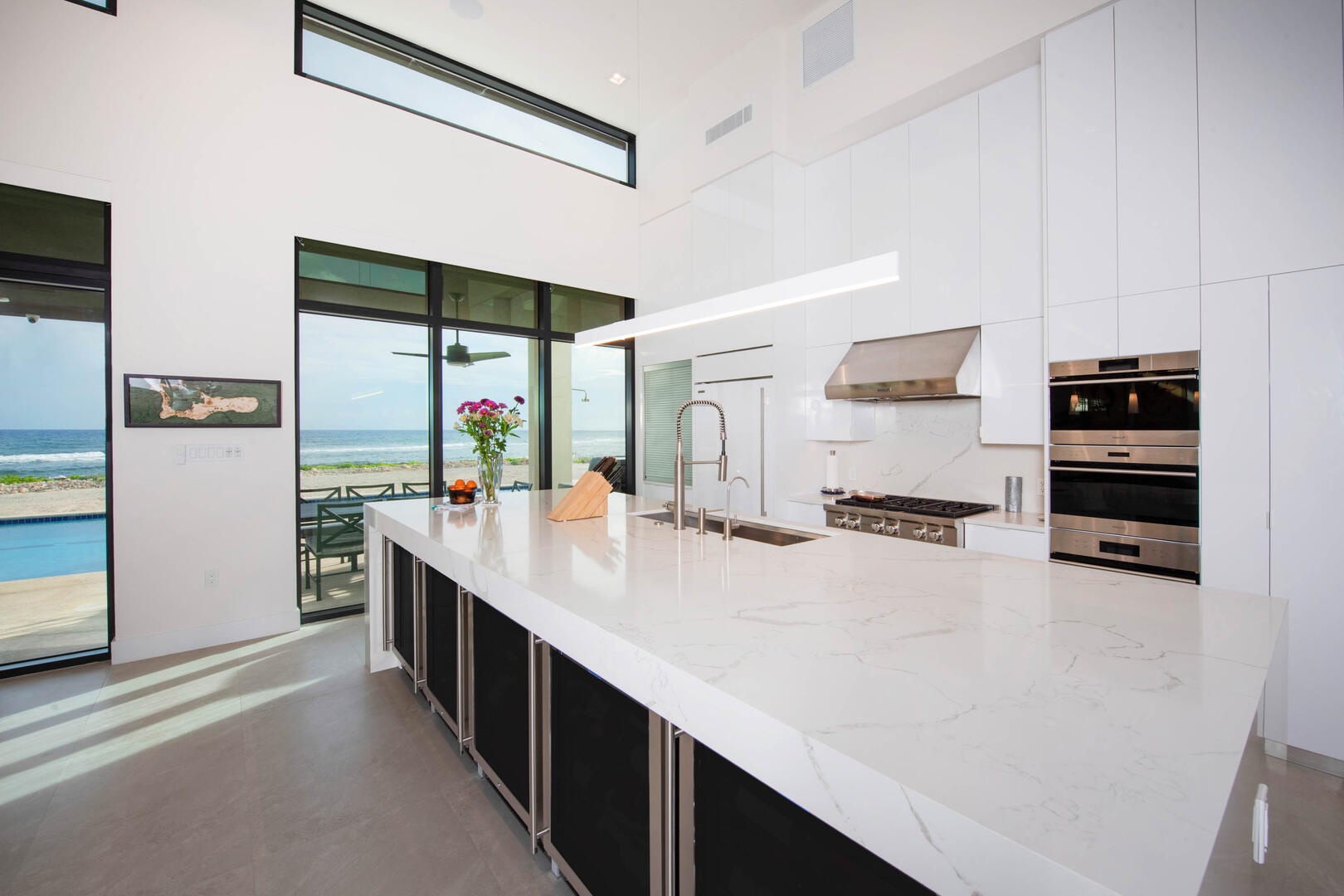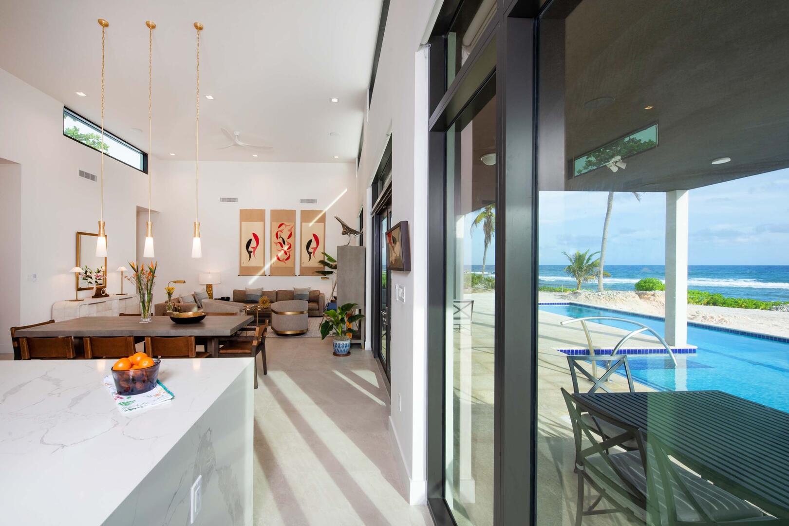 Multiple walls of glass windows and doors frame the stunning ocean views from virtually every angle while providing convenient walk-out access to the pool deck.
