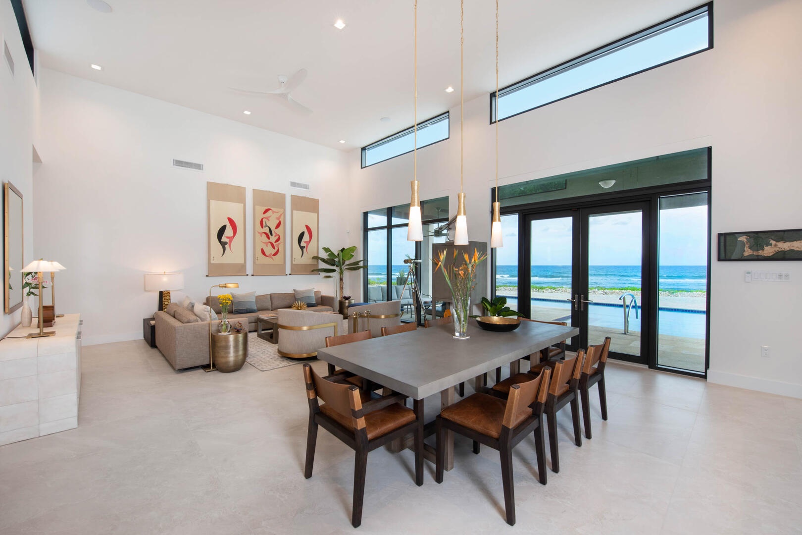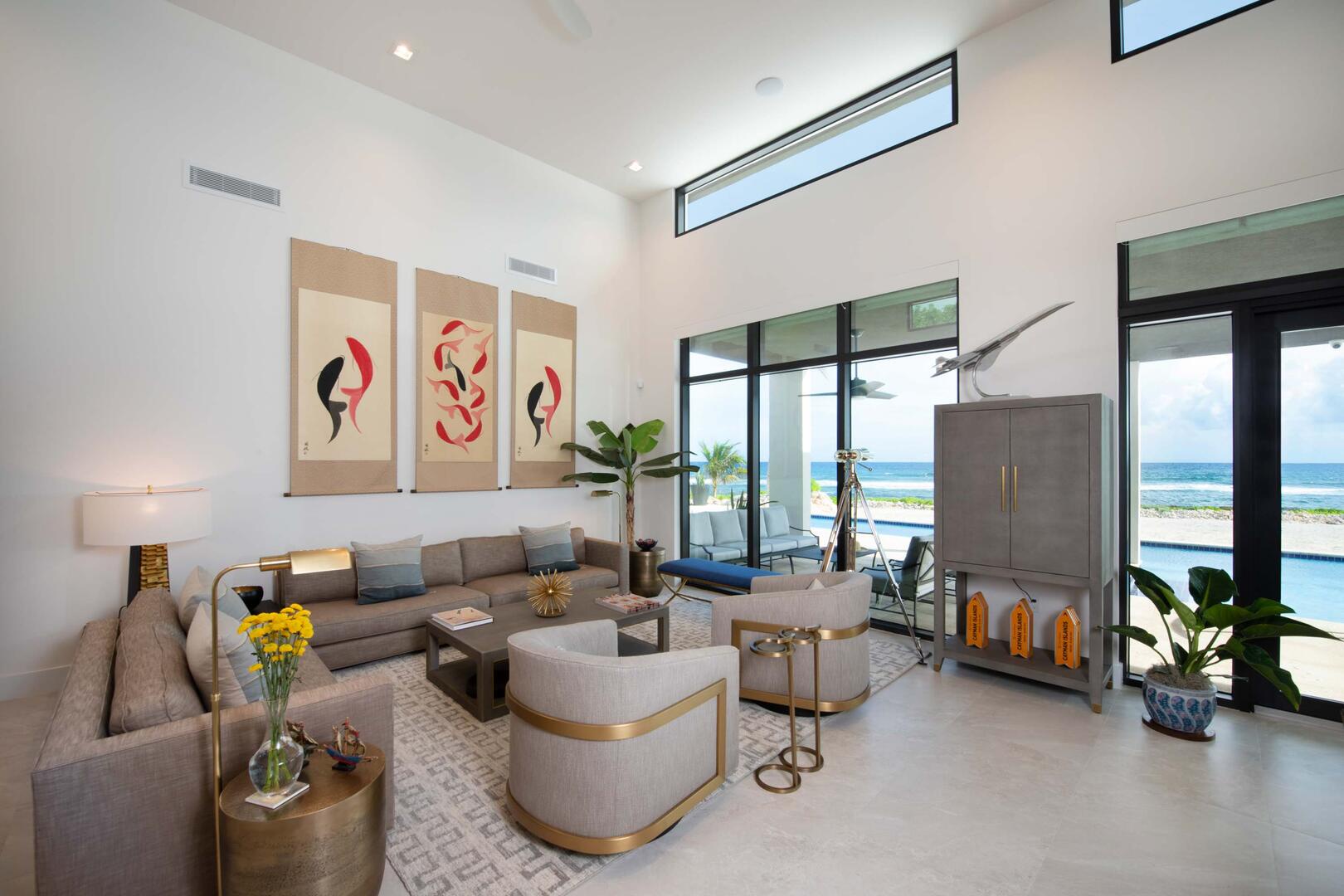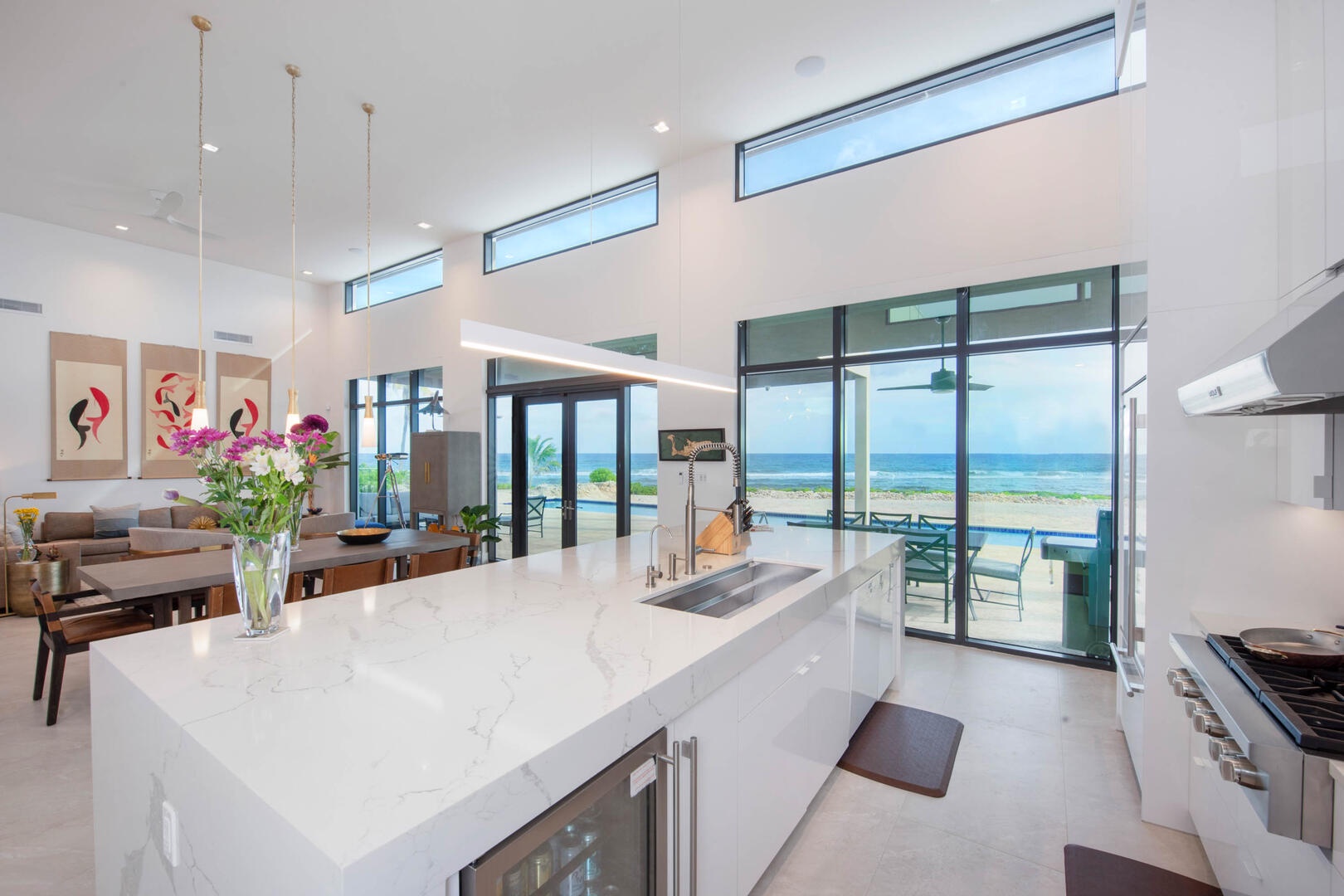 Multiple walls of glass windows and doors frame the stunning ocean views from virtually every angle while providing convenient walk-out access to the pool deck.