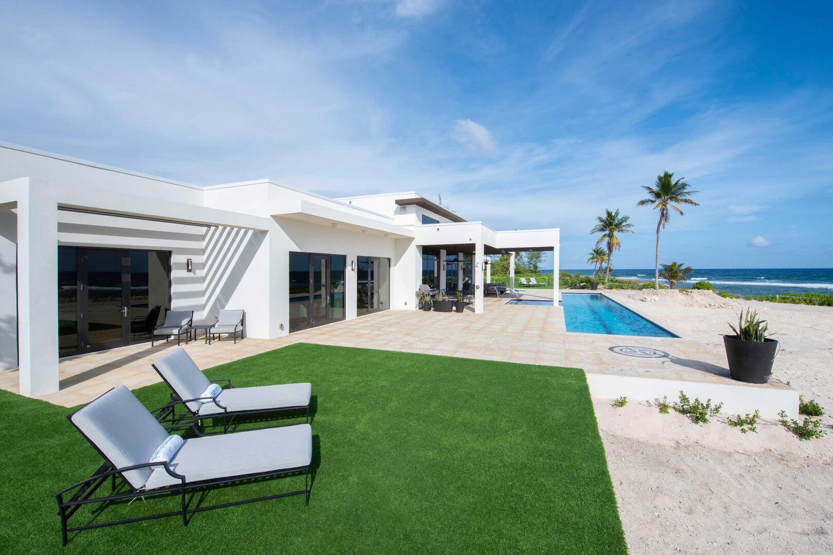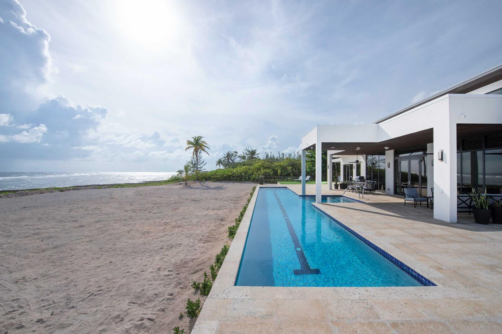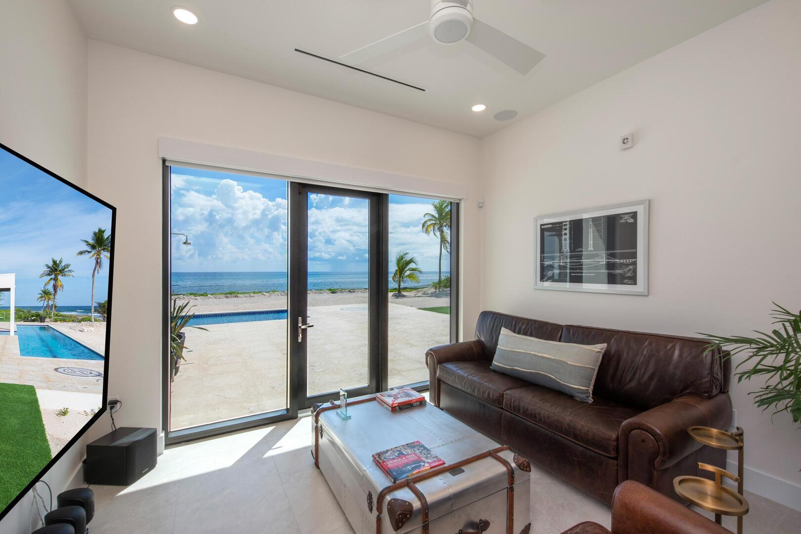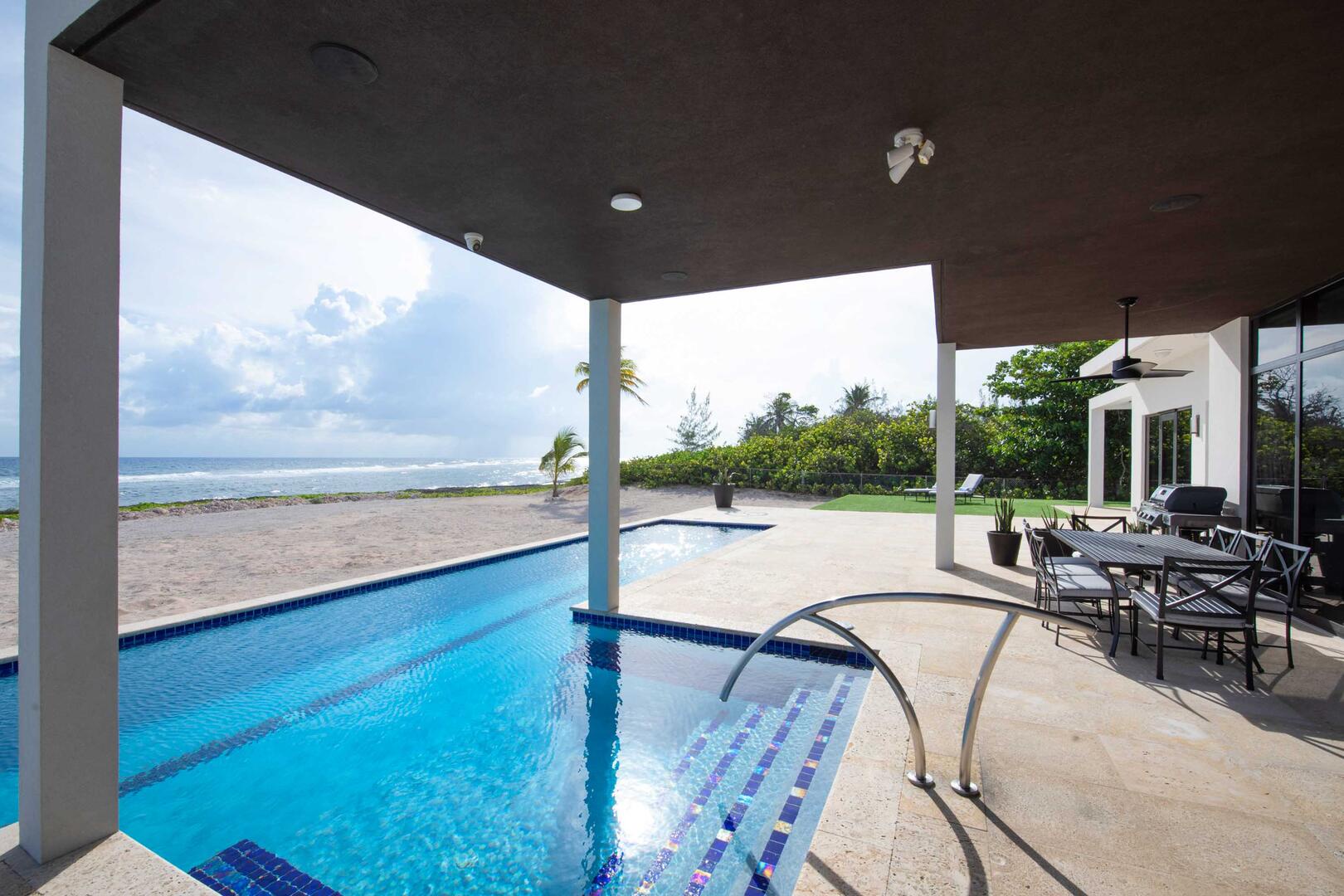 Wind Upon the Waves sits on an elevated, iron-shore shelf overlooking the Caribbean Sea. The villa has scenic panoramic views, however, you cannot enter the ocean from the back of the home. Jagged rocks and rough tides make water entry here perilous.